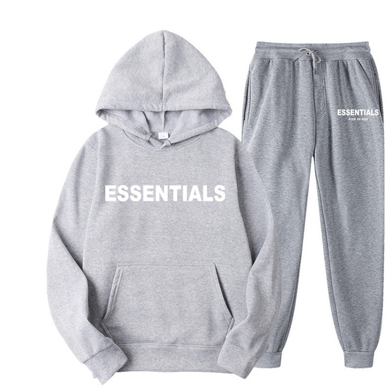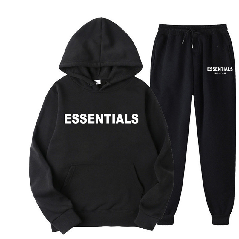 ESSENTIALS Men's Casual Sports Set,Black Fabric With White Letter Graphic. Couple's Set Hoodie, Men's Fall Clothes,Men 2 Piece Set, Casual Loose Sweatshirt, Suitable For Autumn/Winter