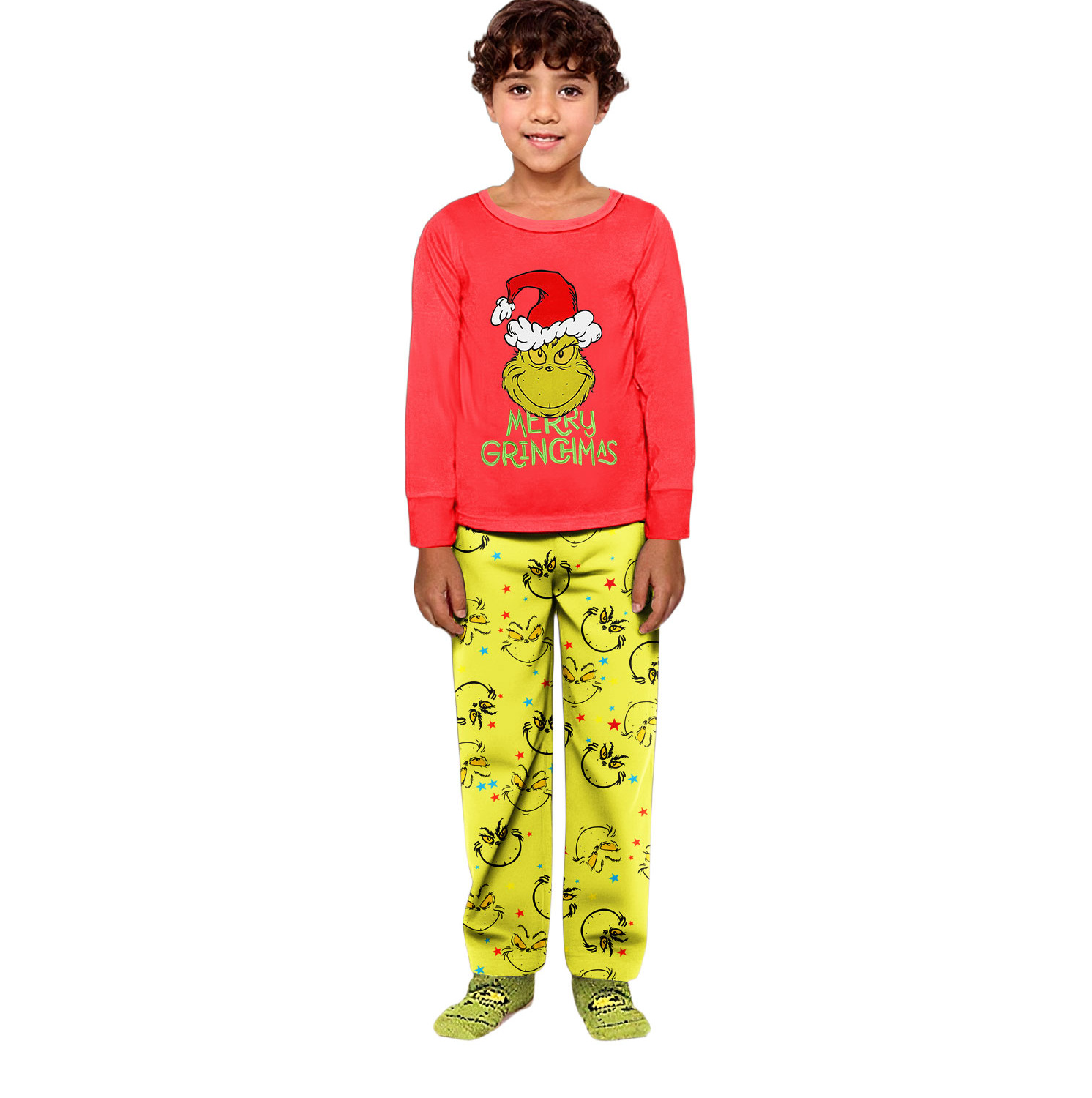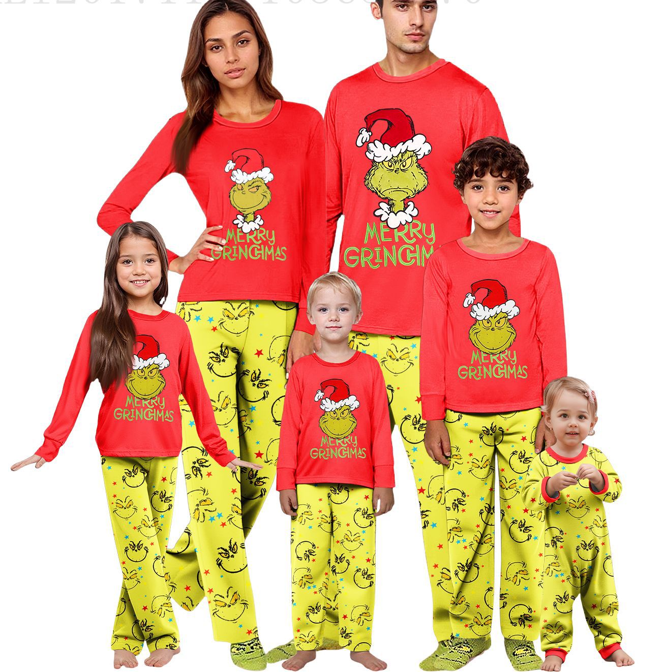 Christmas pajamas Christmas GRINCH Print Parent-Child Long Sleeve Pajama Christmas Suit Home