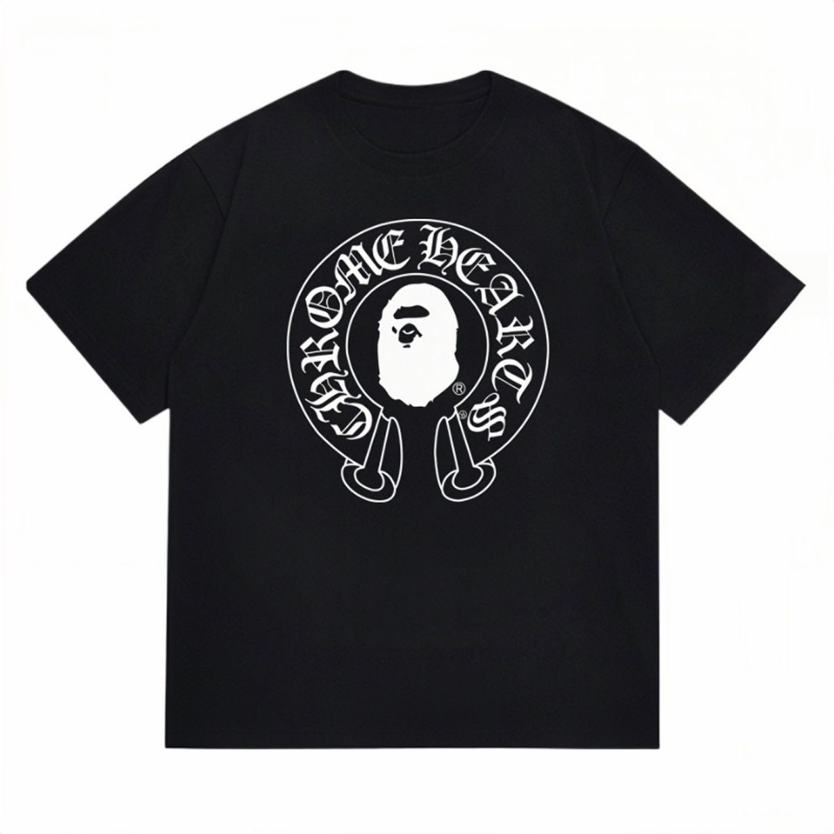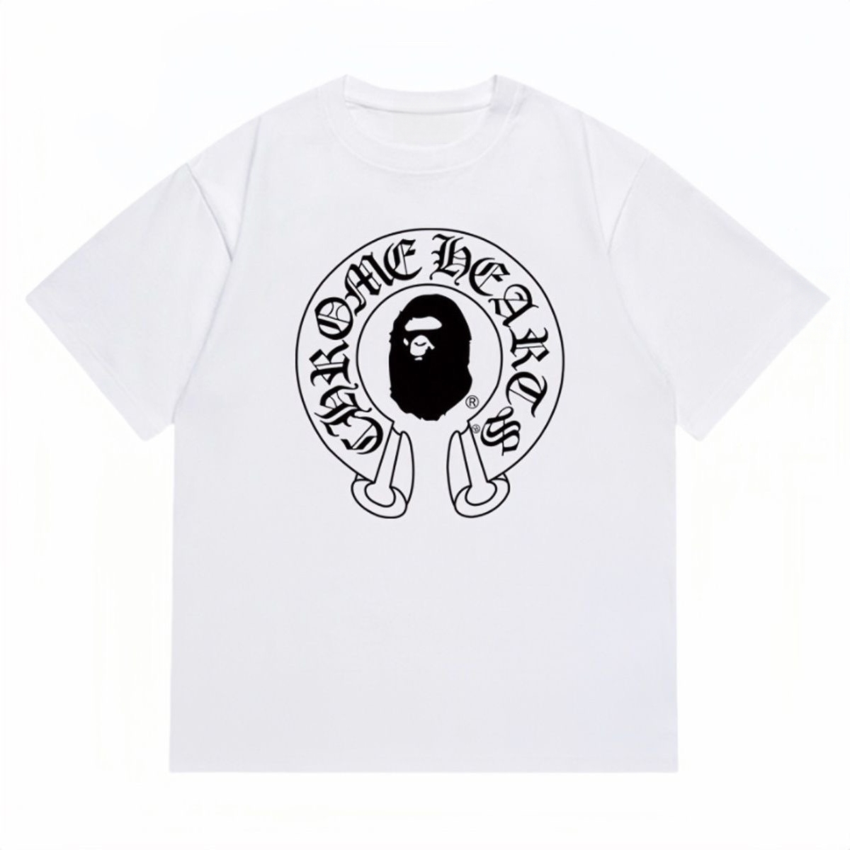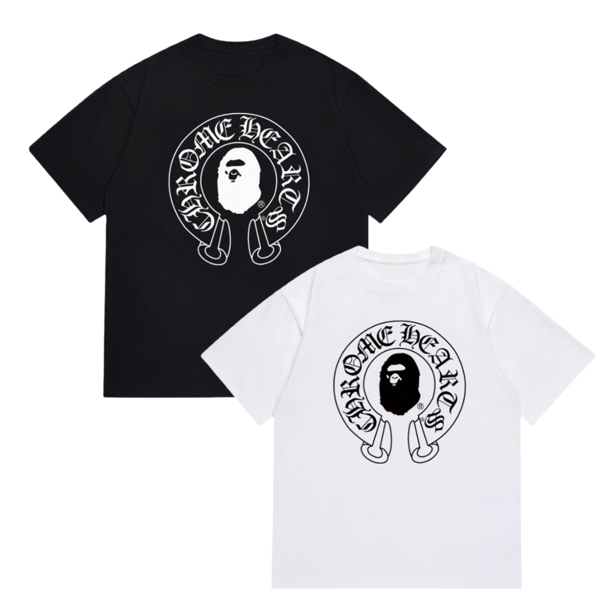APE Fashion T-Shirt, Ape Head Black-and-White Pattern Print, Casual Comfort