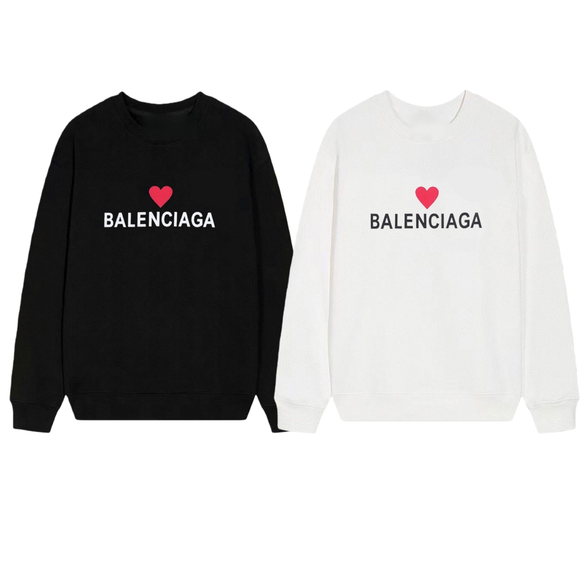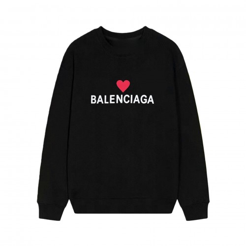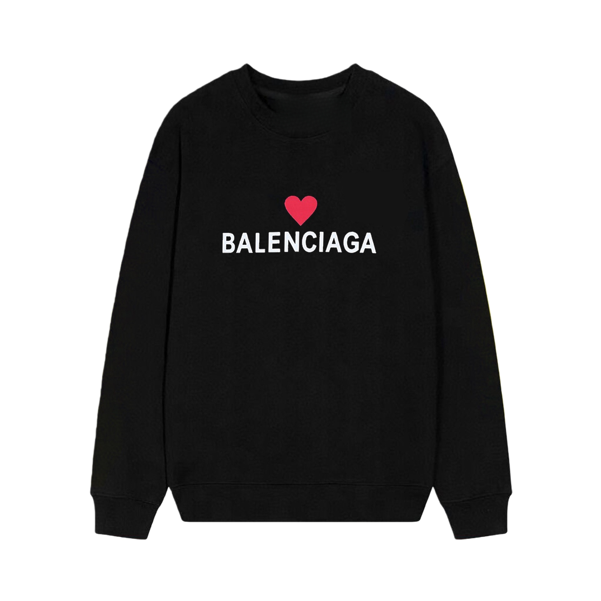 BALENClAGA Red Heart Logo Black Thermal Crewneck Sweatshirt Sweet-edgy Contrast Couple's Style Minimalist, Sophisticated Autumn/Winter Essential