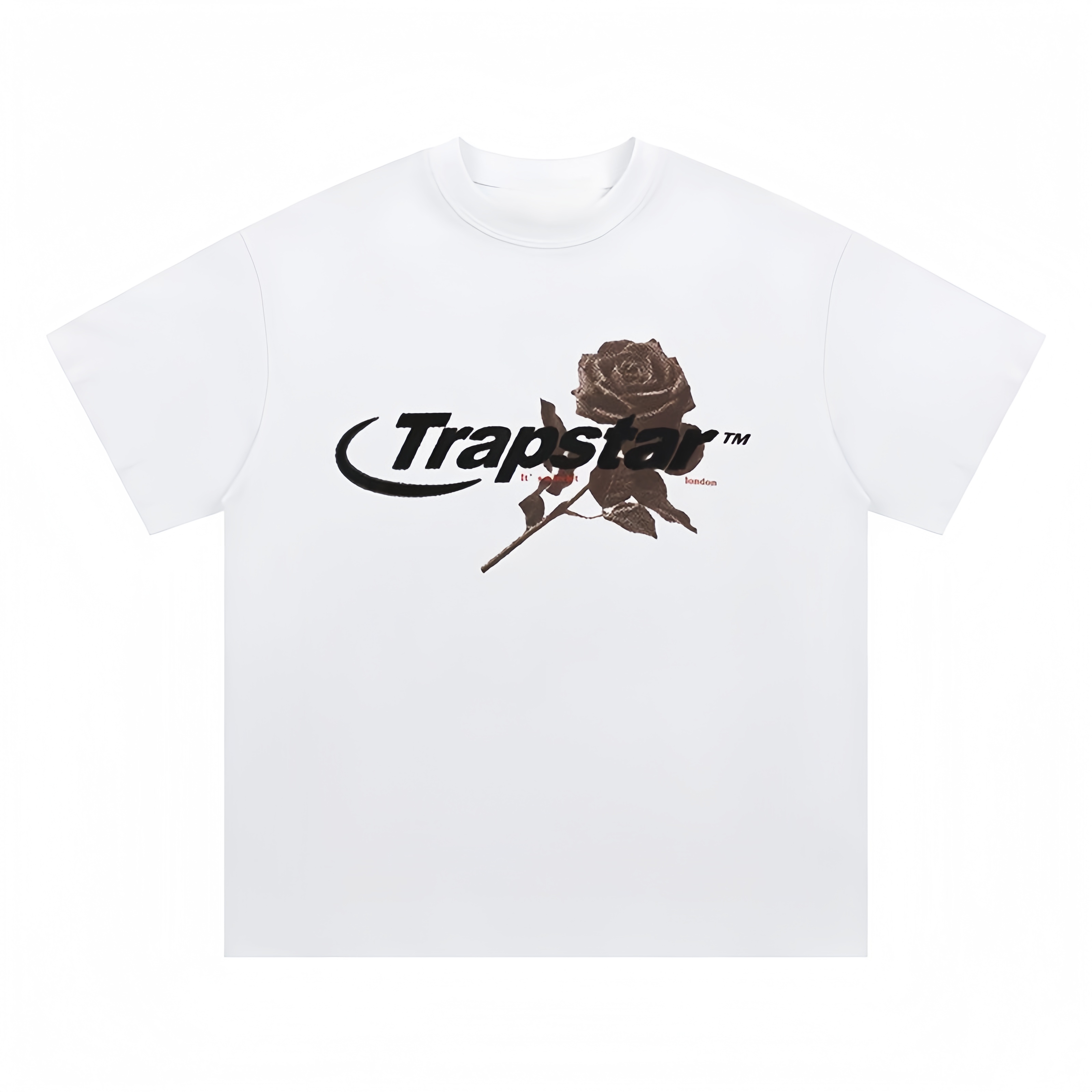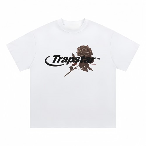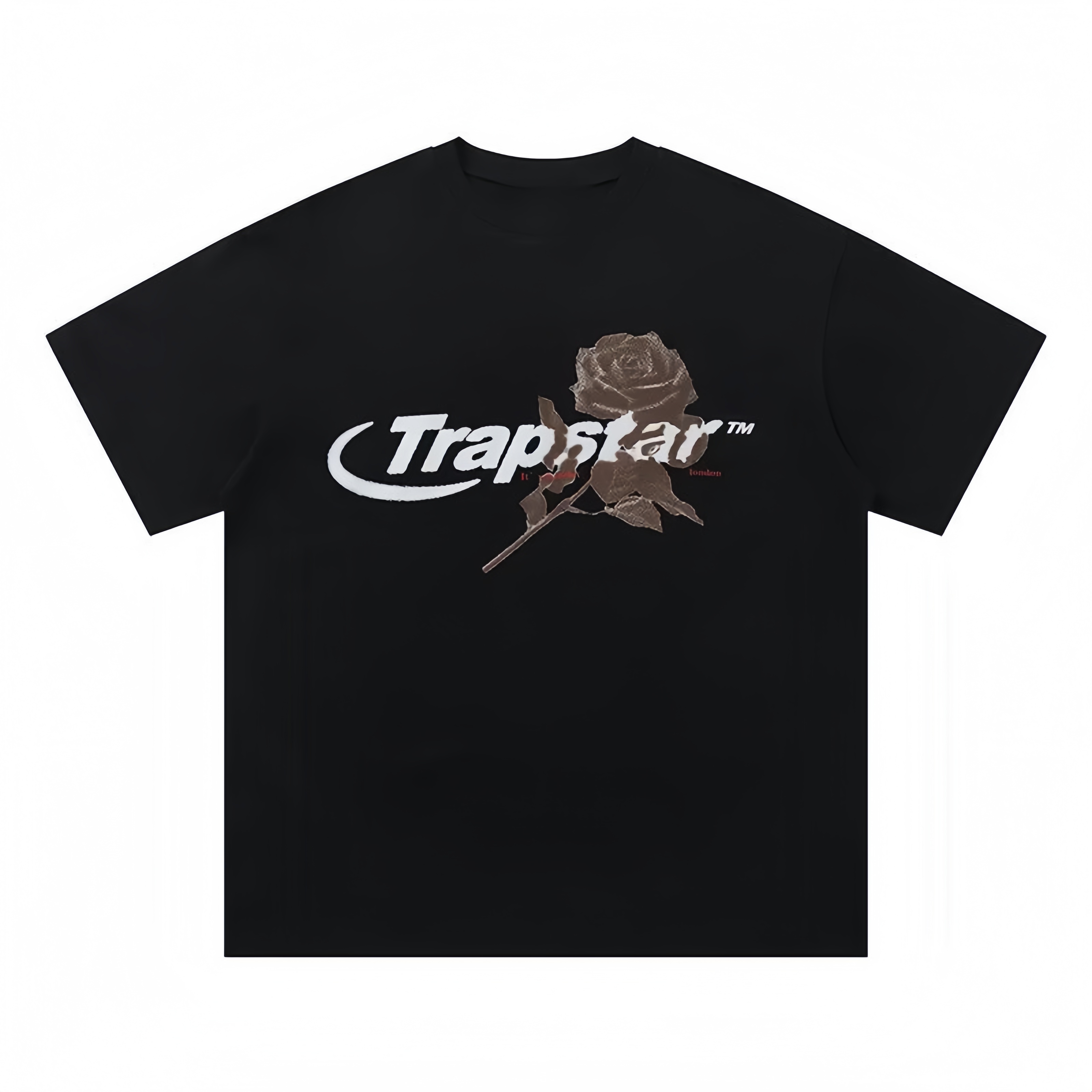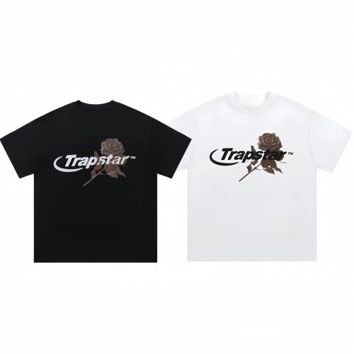 TRAPSTAR New Men's Streetwear T-Shirt Rose Print Short-Sleeve T-Shirt Black Oversized Fit Dark High-Street Style