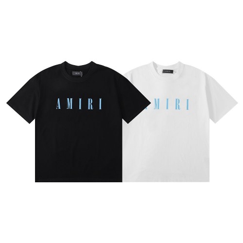 AMIRI Blue letter print Style 2025 New Y2K Vintage Graphic Tee | 100 percent Cotton Oversized T-Shirt |Streetwear Casual Loose Fit | Couple Matching Tops for Men Women | Hip Hop Summer Style