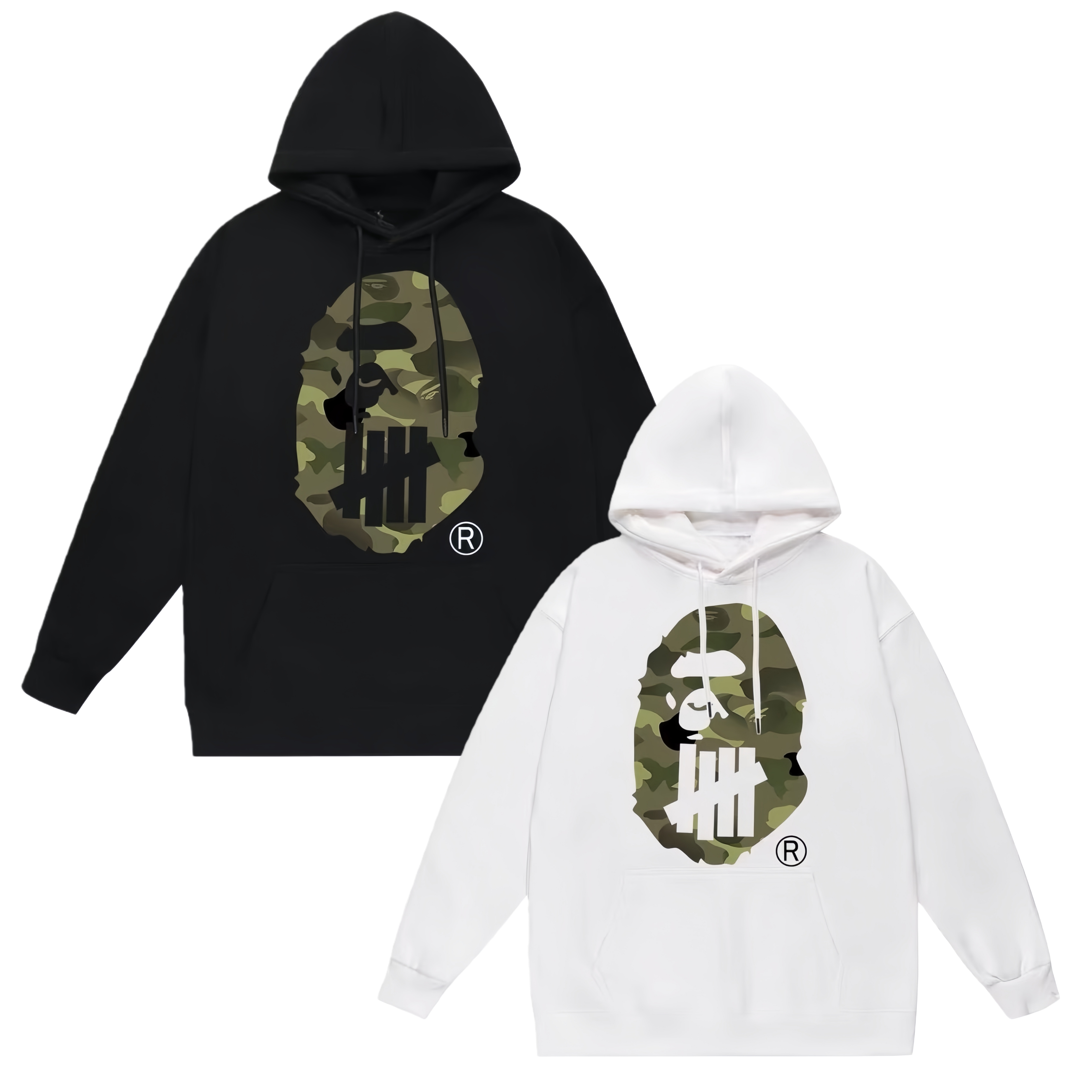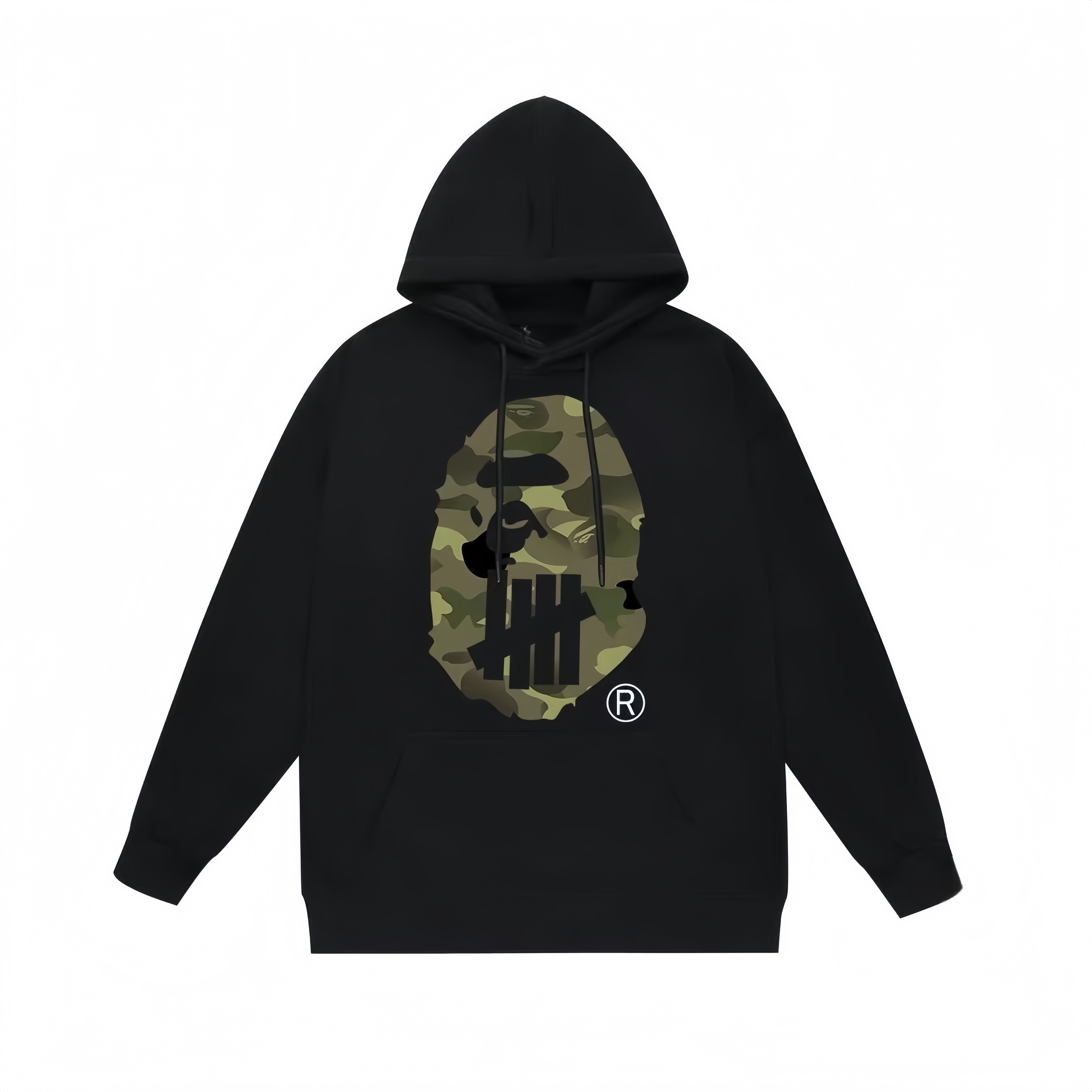APE Fashion New Hoodie Classic ape head camouflage print design Kangaroo pockets Relaxed fit for comfort Windproof and warm
