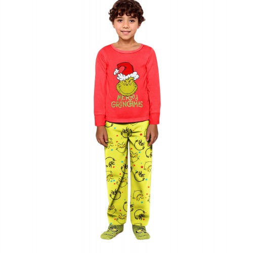 Christmas pajamas Christmas GRINCH Print Parent-Child Long Sleeve Pajama Christmas Suit Home
